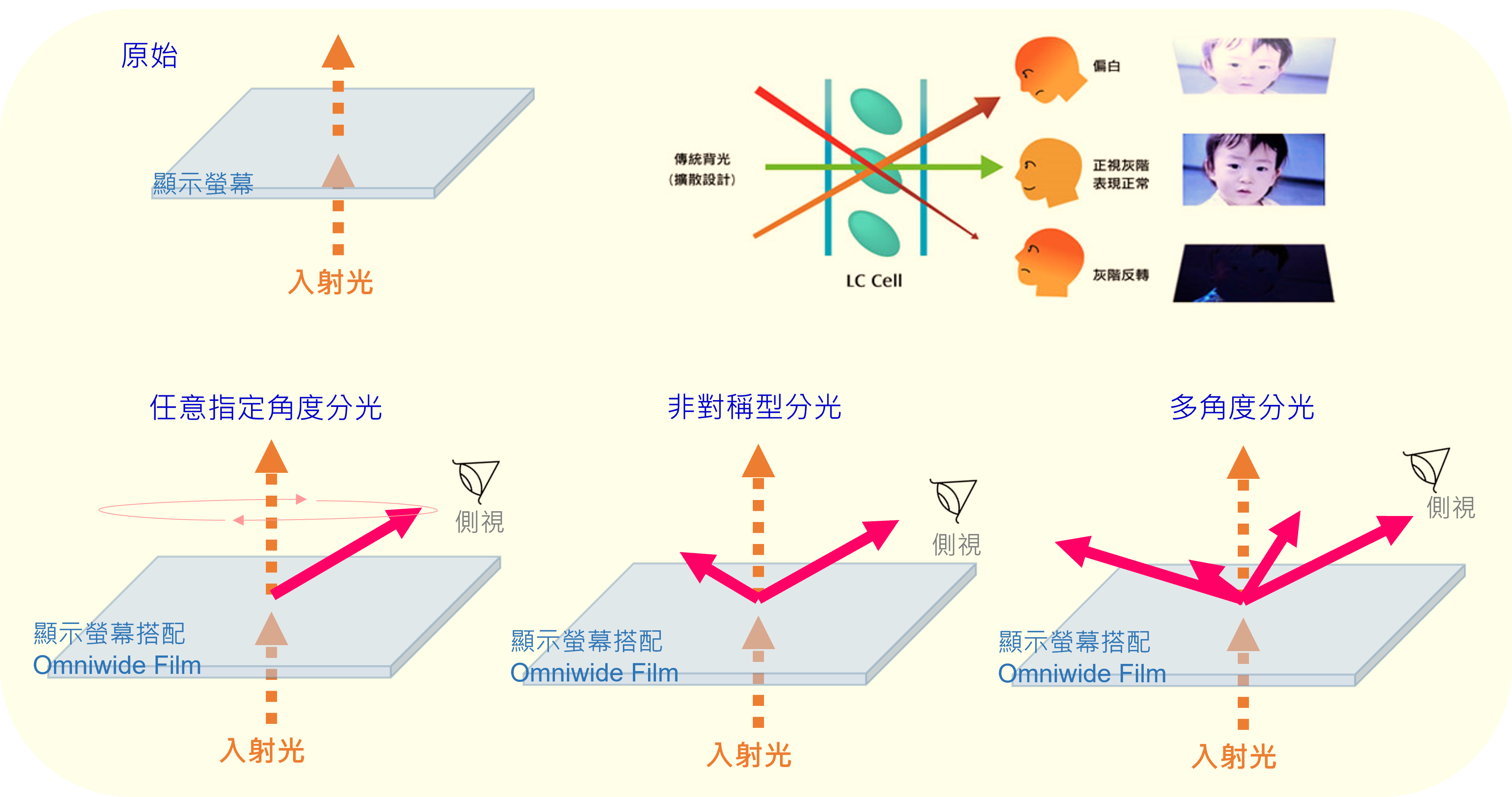因應不同產品光學的需求,我們透過調整光場分佈,可於特定角度分配特定能量,以達到最佳的視覺補償效果。